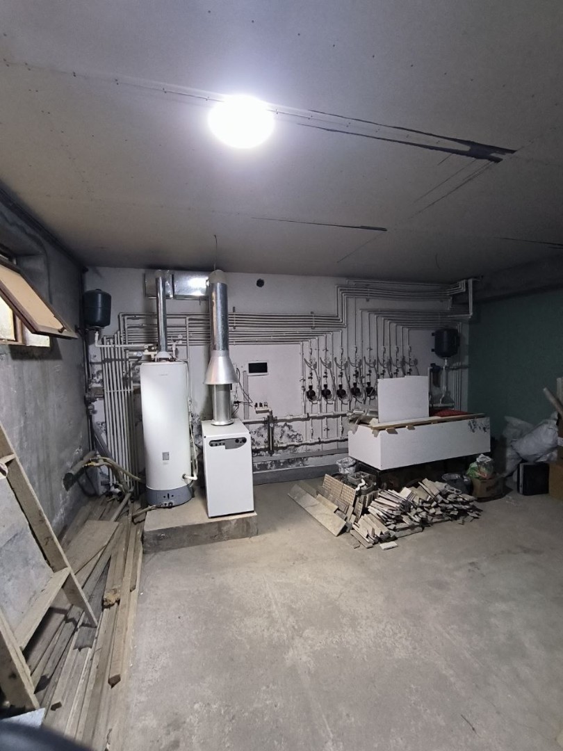 В подвале установлено отопительное система.